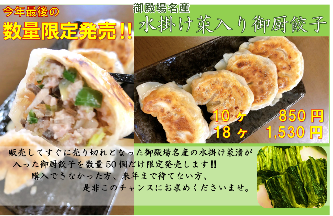 お待たせいたしました!水掛菜入り御厨餃子発売開始!!